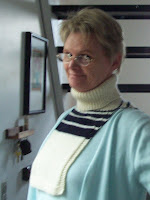 Er faktisk temmelig stolt, for jeg har ikke strikket siden i starten af firserne. Jo, altså lige med undtagelse af et par sokker, som er sendt til Mariannes Mathias. På den side, som vender ind mod halsen, er der stikket med angoragarn, jo, jo – Jens skal have det lunt og godt. Glæder mig til at trække den over hovedet på ham.